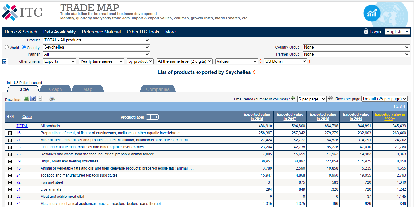 Goods Export Statistics from Seychelles